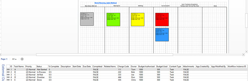 WORK CHUNKS ARE LINKED TO THE PROJECT TEAM DAILY ACTION ITEMS, SHOWING RED / GREEN / YELLOW STATUS