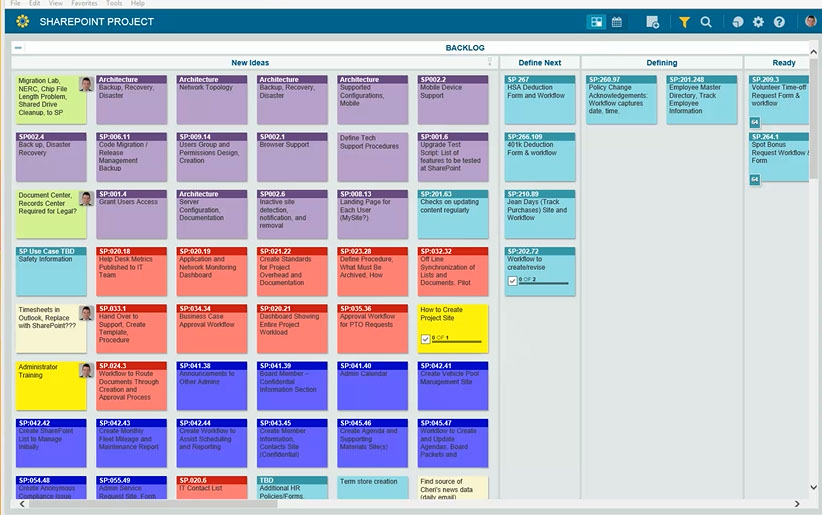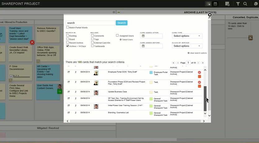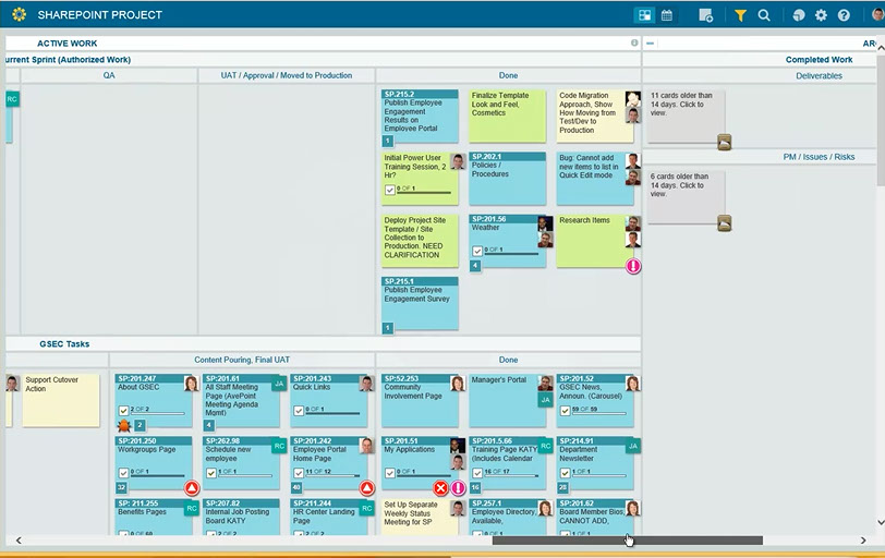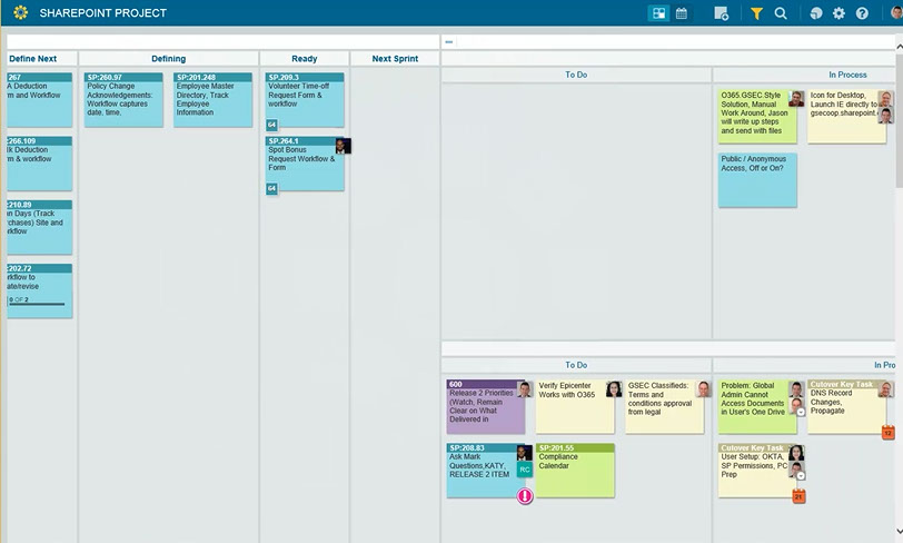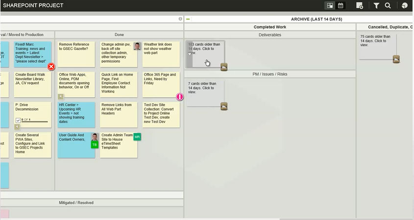 (Cards on an electronic KANBAN Board)