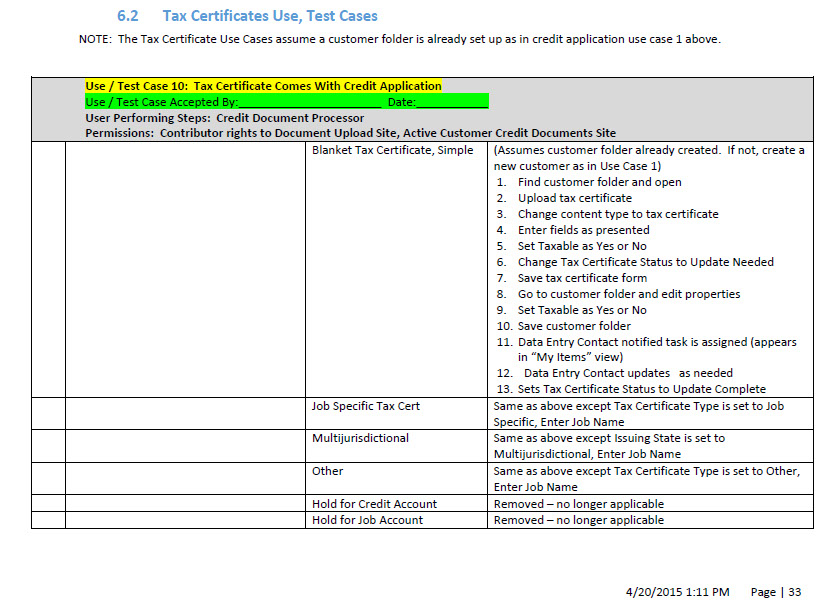 REDUCING TASKS TO ACTION REQUIRES USE CASES, SPECIFICATIONS, REQUIREMENTS